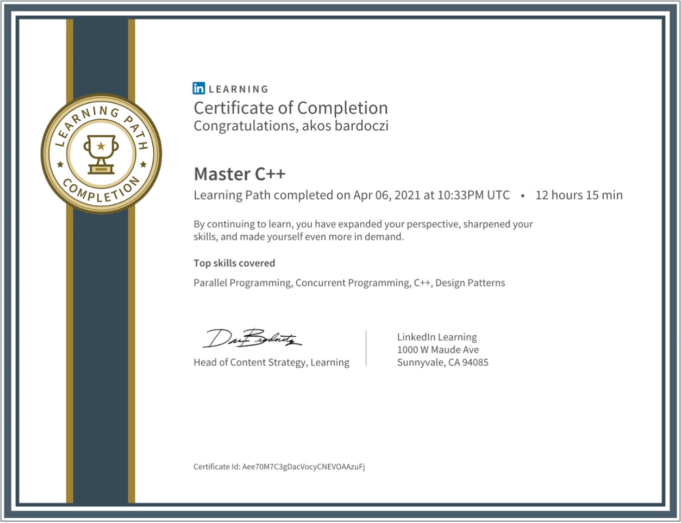 C++ learning path offered by LinkedIN